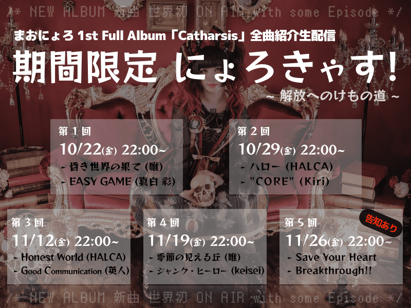 1st Full Album「Catharsis」全曲紹介生配信をツイキャスで実施します!